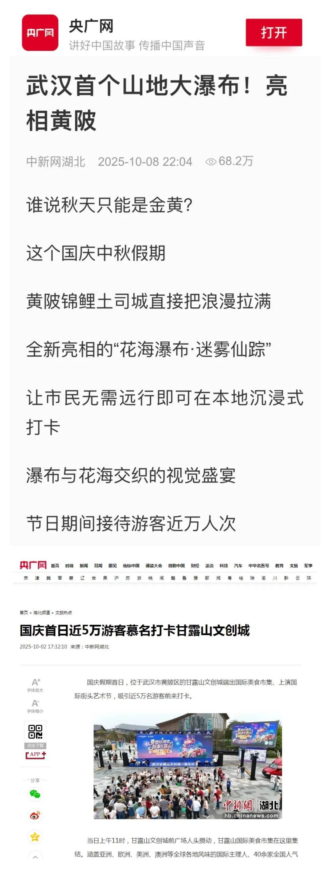 新华网、央广网、中新网等央媒高频次转推黄陂相关内容,全方位展现黄陂双节风采。