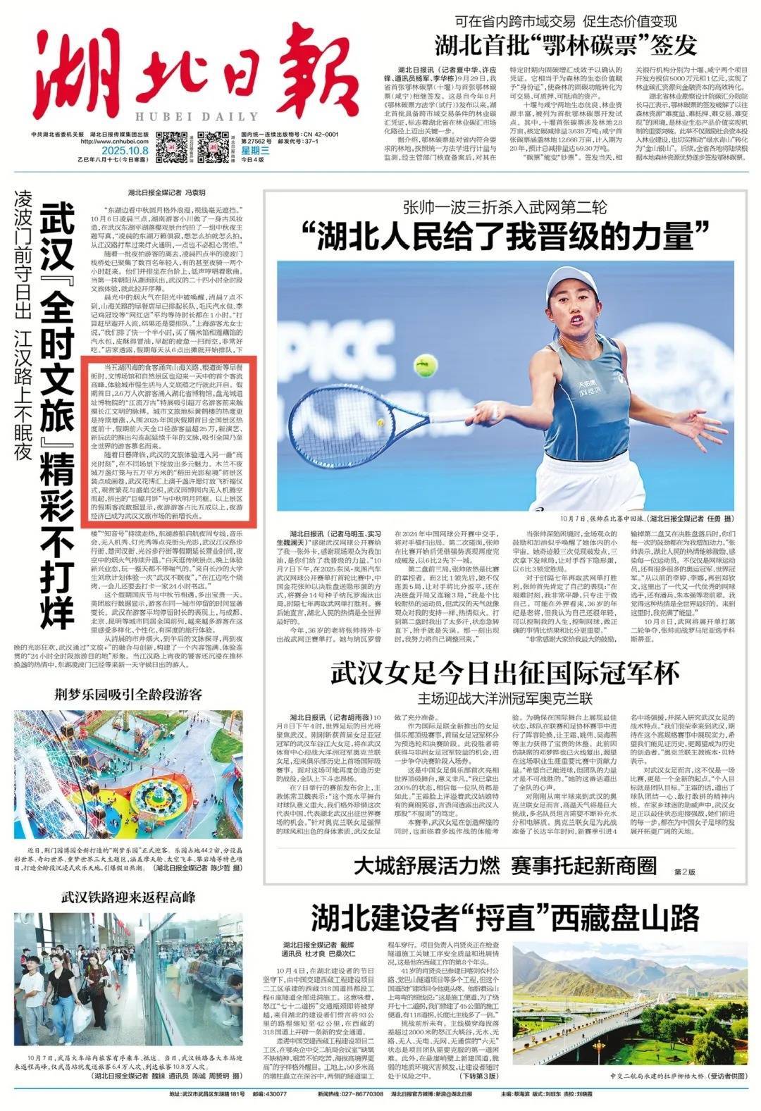 湖北日报 长江日报3次头版报道